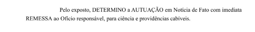 Por fim, o procurador ainda determina a “imediata remessa ao ofício responsável, para ciência e providências cabíveis”.