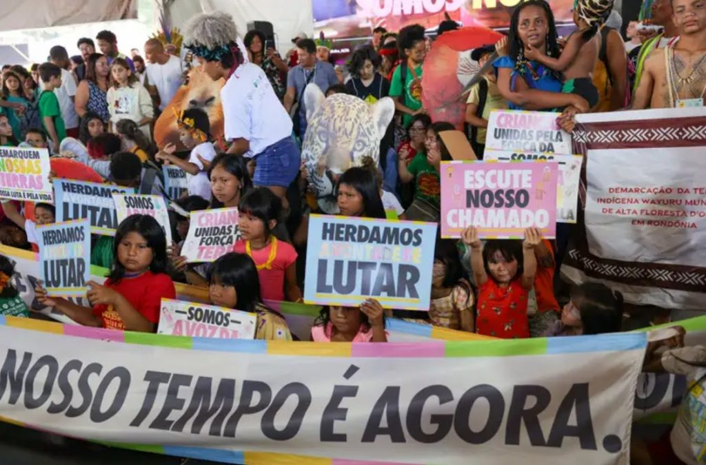 “Sempre falam que somos o futuro, mas somos o presente e o agora! Os ancestrais nos ensinaram a ouvir a natureza e agora pedimos que os outros adultos nos ouçam. Estamos ouvindo o som do mundo de vocês desmoronando. E vocês? Conseguem ouvir? Escutem nosso chamado: somos parte da solução. Sabemos que existe um jeito de salvar o nosso mundo e estamos prontos para caminhar juntos, unidos para proteger nossas terras, nossos rios e nossas culturas”, acrescentaram as crianças, cobrando “de quem governa e toma decisões” a devida proteção às florestas e ao planeta.
