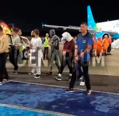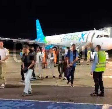 A CENARIUM recebeu com exclusividade um registro onde mostra os brasileiros deportados saindo do avião utilizando algemas nas mãos e nos pés, como vemos nas imagens abaixo: