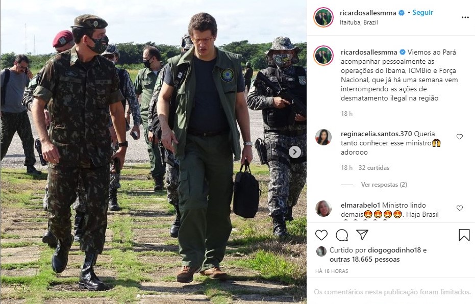 “Viemos ao Pará acompanhar pessoalmente as operações do Ibama, ICMBio e Força Nacional, que já há uma semana vem interrompendo as ações de desmatamento ilegal na região”, informou o ministro em suas redes sociais.