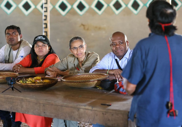 BRASÍLIA (DF) – Uma comitiva do governo federal viajou, na quarta-feira, 10, até a Terra Indígena Yanomami (TIY) em Roraima. As ministras do Meio Ambiente e Mudança do Clima, Marina Silva, e a dos Povos Indígenas, Sonia Guajajara, além do ministro dos Direitos Humanos e da Cidadania, Silvio Almeida, reuniram-se com lideranças locais um dia após o governo federal anunciar ações estruturantes de R$ 1,2 bilhão que fortalecerão a saúde pública, a fiscalização e o controle territorial na região, por exemplo.