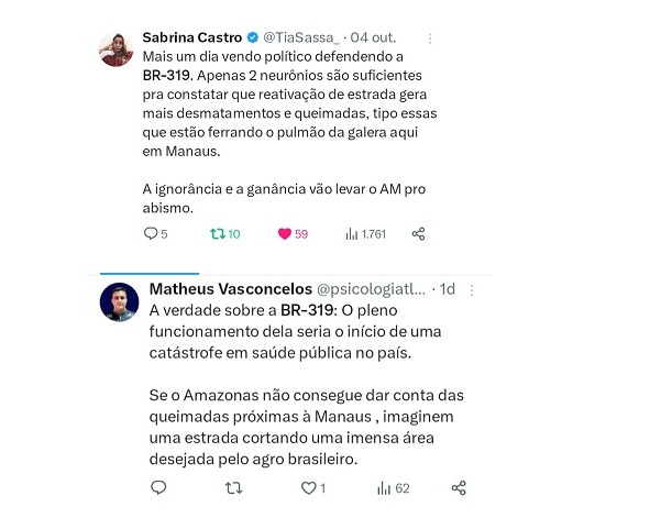 É importante ressaltar que a rodovia carece de estudos de viabilidade econômica. A urgência de ações eficazes para conter esse desastre ambiental é inegável, à medida que os riscos ambientais e sociais continuam a se multiplicar diante de nossos olhos em quanto a fumaça das queimadas sufoca a população. Apenas as chuvas deste final e início de semana foram capazes de minimizar a fumaça, embora seu cheiro ainda seja perceptível em diversos pontos de Manaus.