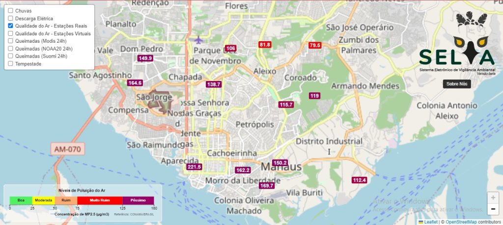 MANAUS – A qualidade do ar em Manaus foi considerada “muito ruim” a “péssima” nesta quinta-feira, 28, de acordo com consulta à plataforma do Sistema Eletrônico de Vigilância Ambiental (Selva), e moradores da cidade relatam dificuldades para respirar, além de dores de cabeça e cansaço. Na noite dessa quarta-feira, 27, e início da manhã de hoje, a fumaça tomou conta, mais uma vez, da cidade.