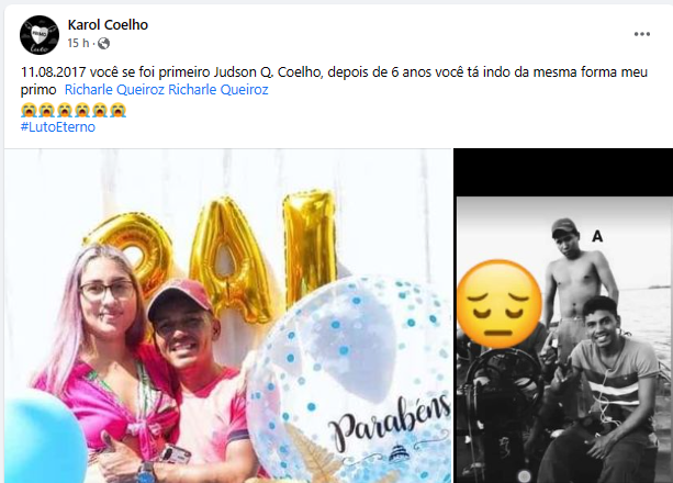 Nas redes sociais, familiares e amigos lamentam a morte de Richarle. O velório está marcado para a tarde deste sábado, 12, na funerária Almir Neves. O falecimento da vítima ocorreu no mesmo dia em que o irmão dele, Judson, morreu há seis anos. “Você se foi primeiro, Judson Q. Coelho. Depois de 6 anos, você está indo da mesma forma, meu primo [Richarle]“, escreveu um familiar na rede social Facebook.