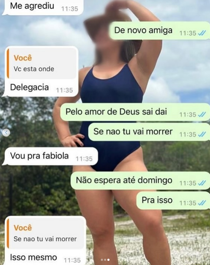 A pessoa também pede que Clisia se afaste do agressor: “senão tu vai morrer” e recebe a resposta: “Isso mesmo”. A vítima também informa, na conversa, que vai para a casa de outra mulher, identificada apenas como Fabíola. “Vou para a Fabíola”, disse. Veja capturas de tela: