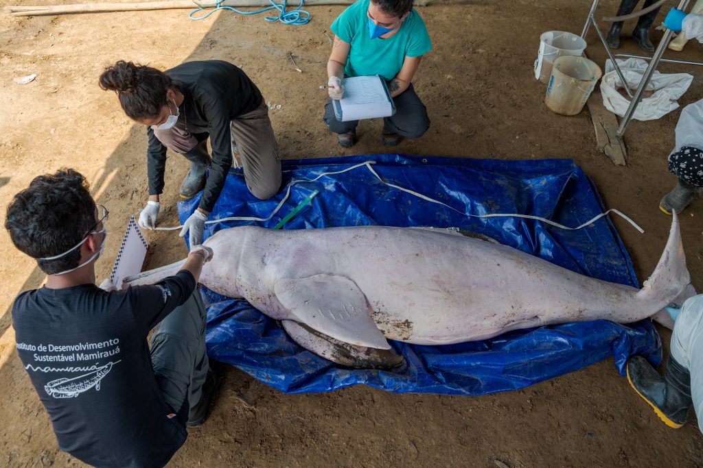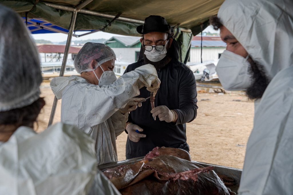 Os pesquisadores já necropsiaram, desde o início da crise, 104 botos, e enviaram amostras de tecidos e órgãos para laboratórios especializados. Entre o 17 indivíduos já avaliados, até o momento, não