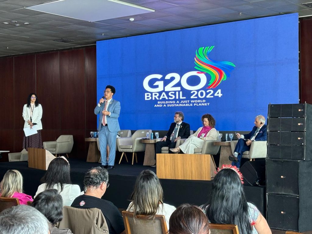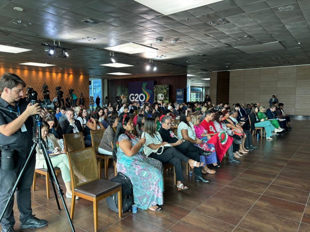Em sua fala, Regina Mota destacou a importância de políticas públicas que promovam o fortalecimento de mulheres na Amazônia e no cenário do G20, bem como a necessidade de financiamento para projetos voltados à geração de emprego e renda. “Queremos fortalecer as áreas protegidas e assegurar que as comunidades indígenas e quilombolas sejam consultadas previamente antes de qualquer empreendimento econômico em seus territórios”, enfatizou Regina, chamando atenção para a urgência de frear práticas predatórias e exigir uma contribuição mais justa dos setores que mais lucram.