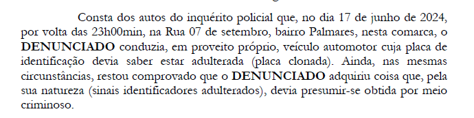 “Ainda, nas mesmas circunstâncias, restou comprovado que o denunciado adquiriu coisa que, pela sua natureza (sinais identificadores adulterados), devia presumir-se obtida por meio criminoso“, afirmou o promotor de Justiça Ricardo Mitoso Nogueira Borges.
