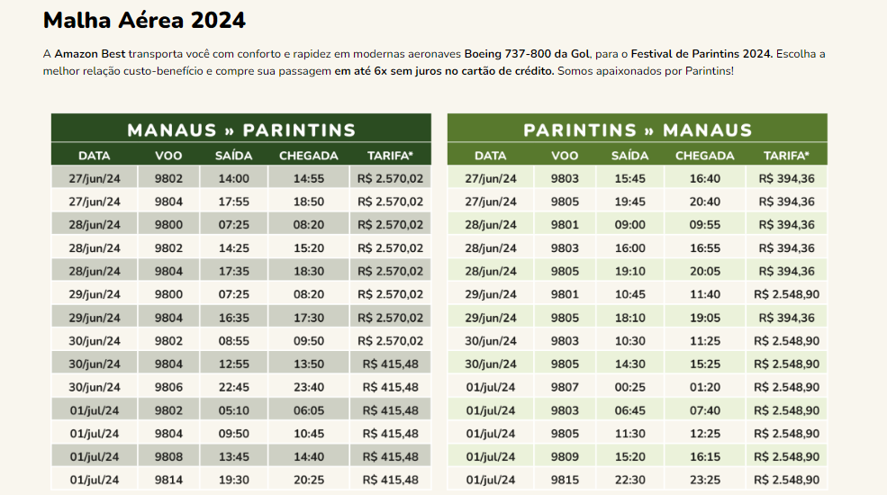 Levantamento feito pela REVISTA CENARIUM em agências de viagens e sites de venda de passagens revela que o custo de voos partindo de Manaus e Parintins chega a ser três vezes maior comparado aos preços fora do “período bovino“.