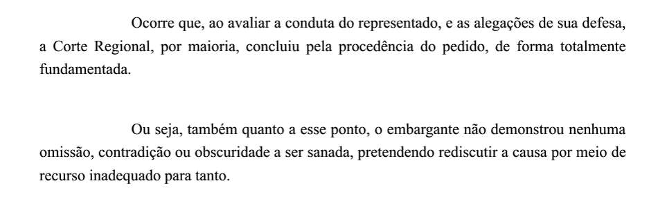O procurador regional eleitoral Rafael da Silva Rocha analisou diversos pontos destacados pela defesa de Silas, afirmando que tanto o partido quanto o deputado fizeram uma tentativa de reabrir uma discussão da causa “sem apontar omissão, contradição ou obscuridade”.