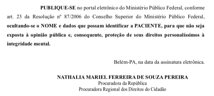 Com isso, o MPF recomendou “que o Estado do Pará, como gestor regional da rede SUS, adote imediatamente todas as providências necessárias para a transferência da paciente ao centro de saúde mais indicado, em caráter de extrema urgência”, diz trecho da recomendação.