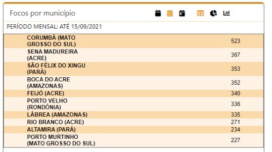 De acordo com dados do Programa Queimadas do Instituto Nacional de Pesquisas Espaciais (Inpe), somente nestes primeiros 15 dias de setembro, o município registrou 367 focos de queimadas. No País, a cidade perde apenas para Corumbá, que fica na região do Pantanal, em Mato Grosso.