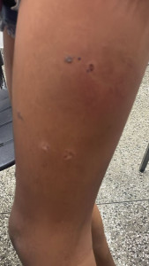 Nas imagens é possível observar queimaduras pelo corpo da adolescentes, além de outros ferimentos.