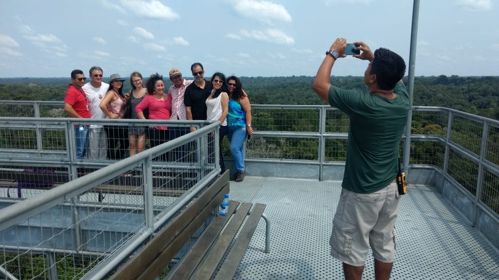 A sugestão é subir a torre devagar, sem pressa e, acompanhar a altura das árvores passo a passo, são duas plataformas até o topo principal da estrutura de aço, que comporta aproximadamente 30 pessoas ao mesmo tempo. A torre convida o visitante também a observar o nascer do sol, às seis horas da manhã, o pôr do sol, de 17h30 às 18h30, conforme a época do ano. Ou ainda, contemplar o panorama noturno do céu da Amazônia repleto de estrelas, como faz vez ou outra, o grupo de astrônomos e amadores da atração.