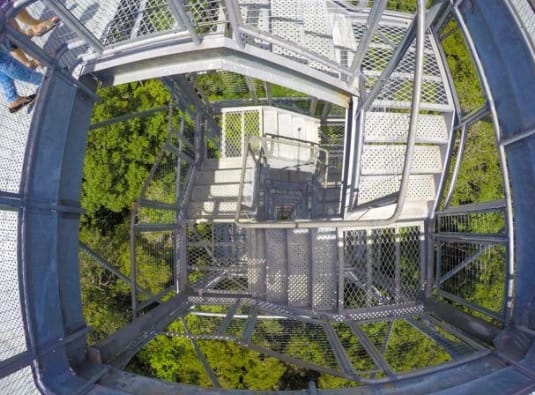 Entretanto, a subida na torre é o ponto principal desta aventura. São 42 metros de altura, 242 degraus e uma minitrilha com insetos e animais peçonhentos. Porém, compensada quando se chega ao ponto mais alto, com uma paisagem fantástica da cidade de Manaus e do majestoso verde da floresta.