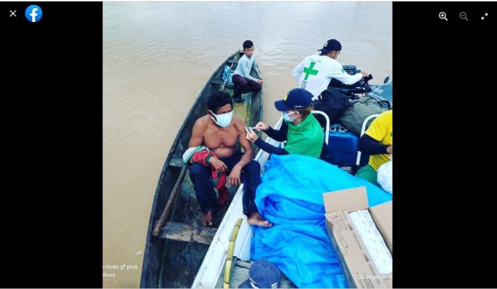 Em janeiro deste ano uma imagem viralizou nas redes sociais e emocionou. No registro, divulgado no Facebook pela enfermeira Adriana Zurra, é possível ver o momento em que um idoso indígena está sendo imunizado contra a Covid-19 no meio do rio em Tefé (a 522 quilômetros), interior do Amazonas.