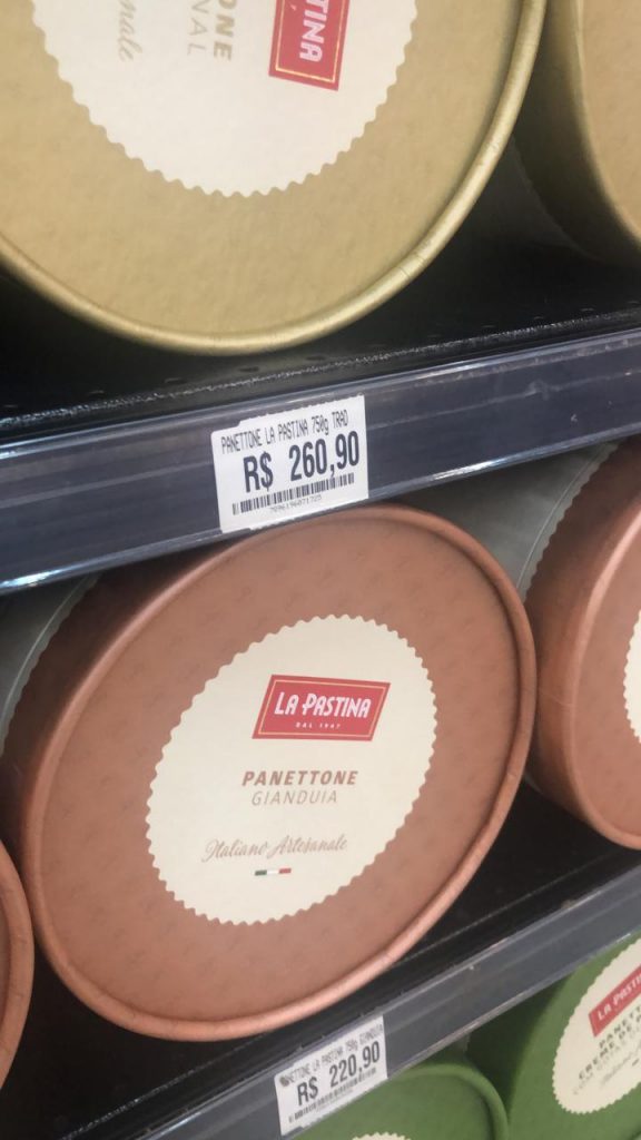 Um outro item comum nessa época do ano é o panetone. Com preço médio encontrado a R$ 30, uma unidade chamou atenção da reportagem ao ser vendida a R$ 260,90 no Pátio Gourmet. Na descrição do produto, o fabricante justifica ser um panetone importado da Itália, produzido artesanalmente, recheado com um creme de textura aveludada com chocolate e avelãs. “Tá louco que eu compraria um desses?”, brincou a auxiliar de serviços gerais.