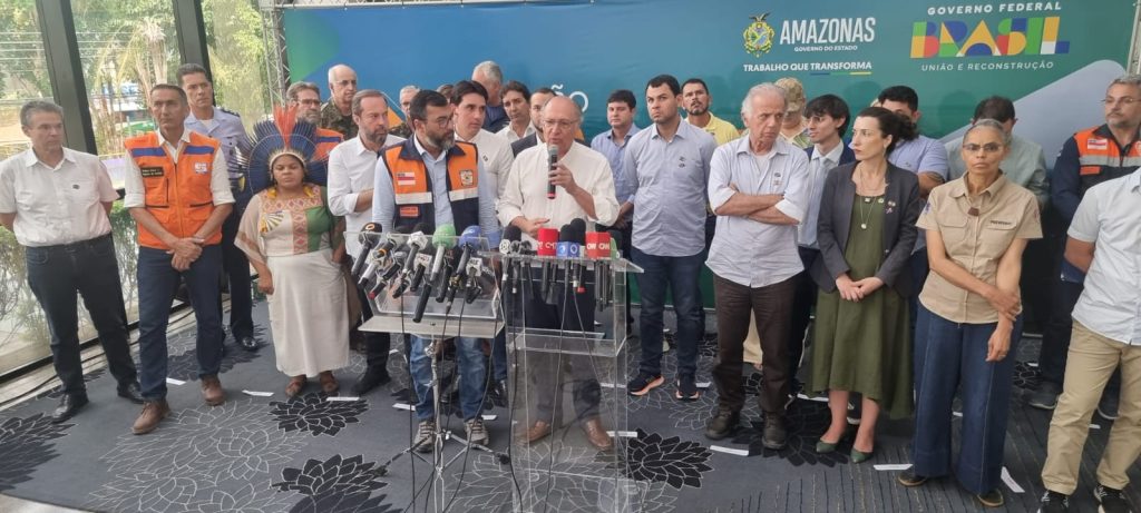 MANAUS (AM) – O vice-presidente da República e ministro do Desenvolvimento, Indústria, Comércio e Serviços (MDIC) Geraldo Alckmin, acompanhado de uma comitiva ministerial, visitou o estado do Amazonas para avaliar a situação de crise causada por uma forte estiagem que atinge mais de 200 mil pessoas. Durante a visita, ele assegurou que não faltarão recursos para auxiliar o estado a enfrentar os desafios decorrentes dessa crise climática.