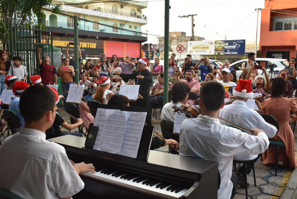 MANAUS – Proporcionar à comunidade acadêmica e ao público uma experiência artística alusiva às festividades natalinas, que têm como essência a narrativa voltada ao nascimento de Jesus. Esse foi o “Natal em Todos os Tempos” realizado pela Escola Superior de Arte e Turismo da Universidade do Estado do Amazonas (Esat/UEA), nessa segunda-feira, 18. A ação ocorreu na área externa da Esat, localizada na Avenida Leonardo Malcher, 1.728, Praça 14 de Janeiro.