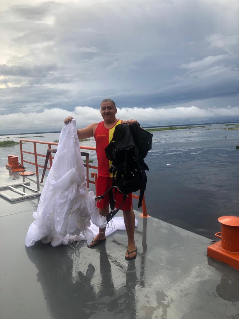 A lancha da corporação localizou o material de um dos paraquedistas. As buscas são realizadas também por agentes da Secretaria de Segurança Pública do Amazonas (SSP-AM), com apoio do Departamento Integrado de Operações Aéreas (Dioa) e Secretaria Executiva-Adjunta de Operações (Seaop), Polícia Militar do Amazonas (PM-AM), Polícia Civil do Amazonas (PC-AM) e Marinha do Brasil.