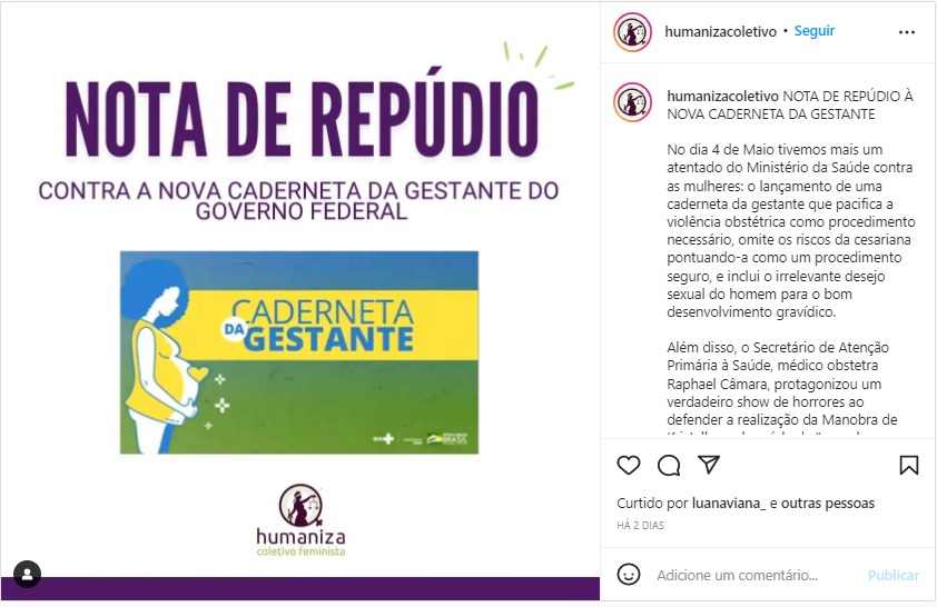 O evento de lançamento da caderneta contou com a participação do Secretário de Atenção Primária à Saúde do Ministério da Saúde (Saps), Raphael Câmara, que, durante a apresentação, “tenta minimizar a gravidade da Manobra de Kristeller”, que significa empurrar a barriga da mãe no momento do parto para estimular o nascimento da criança.