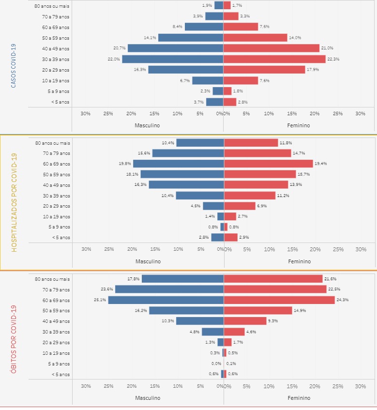 O elevado número de mortes nessa faixa etária ocasionado em parte pela ausência do distanciamento físico, medida essencial para quebrar a corrente de transmissão do vírus, vem acompanhado também de percentual expressivo de contaminados pelo coronavírus no Estado, que hoje já chega a 60% nesse grupo específico. O de hospitalizações também assusta: 31,65% de todos os pacientes que necessitaram de internação tinham esse perfil.