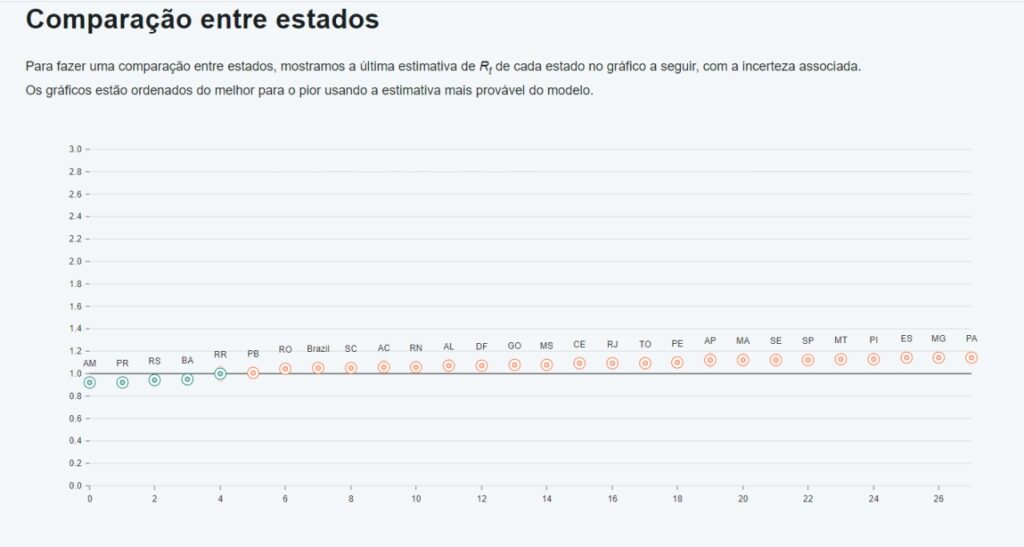 O indicador traduzido aponta que, antes, cada grupo de 100 pessoas contaminadas tinha capacidade para transmitir para até 131. Hoje, essa capacidade caiu para 92. Em contrapartida, no Brasil, a taxa Rt está em 1.05, diretamente ligada ao colapso da rede de saúde em alguns Estados.