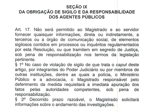 O Conselho Nacional de Justiça (CNJ) em 2016 aprovou a Resolução 217, que dispõe o vazamento seletivo de informações nas investigações criminais. Segundo o CNJ uma série de medidas deve ser adotada para tentar coibir o chamado “vazamento seletivo” de informações sigilosas colhidas em investigações criminais.