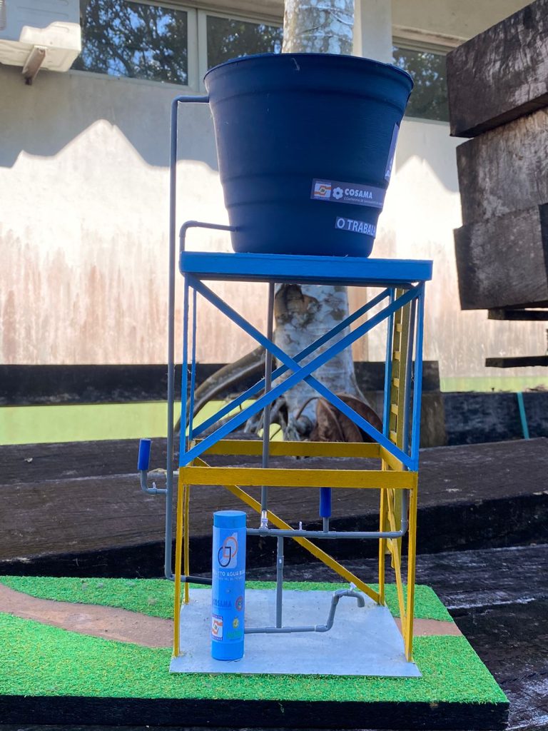 A estrutura consiste em uma base estrutural na qual é instalada o purificador de água. O sistema capta a água de rios e poços e a deixa apta para o consumo, conforme explica a tenente da Diretoria de Respostas a Desastres e Suporte da Defesa Civil, tenente Aline Almeida