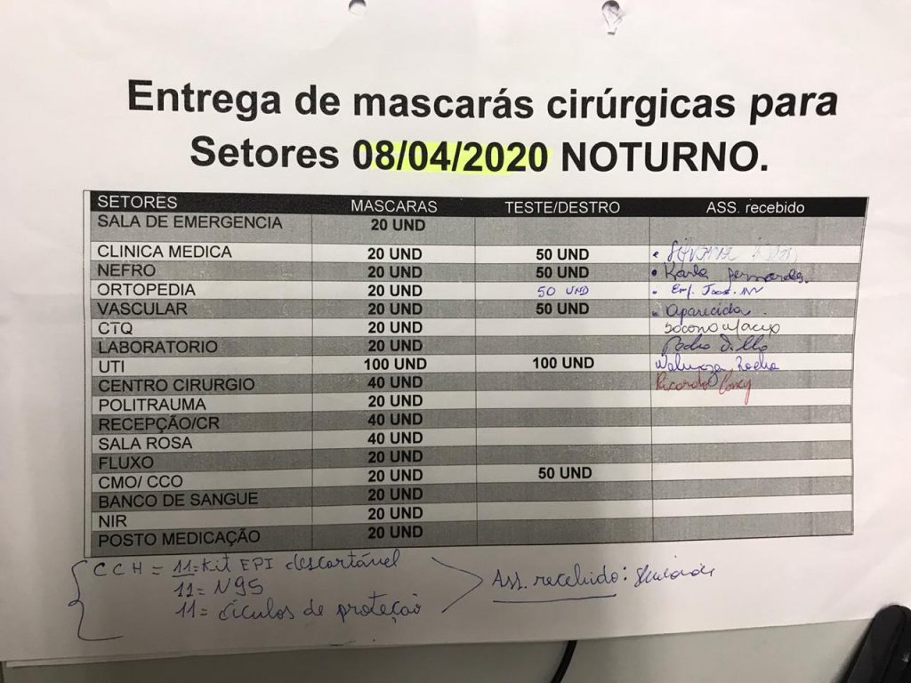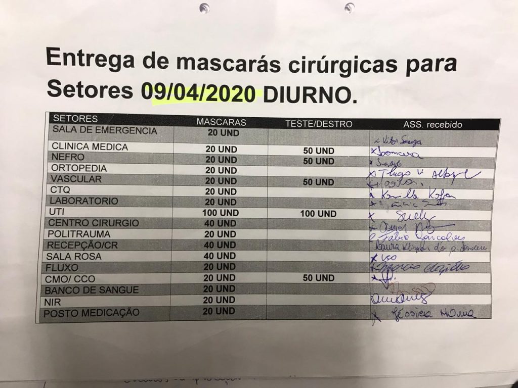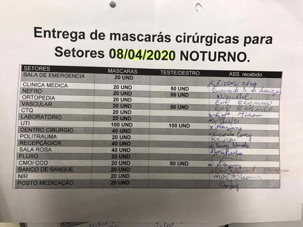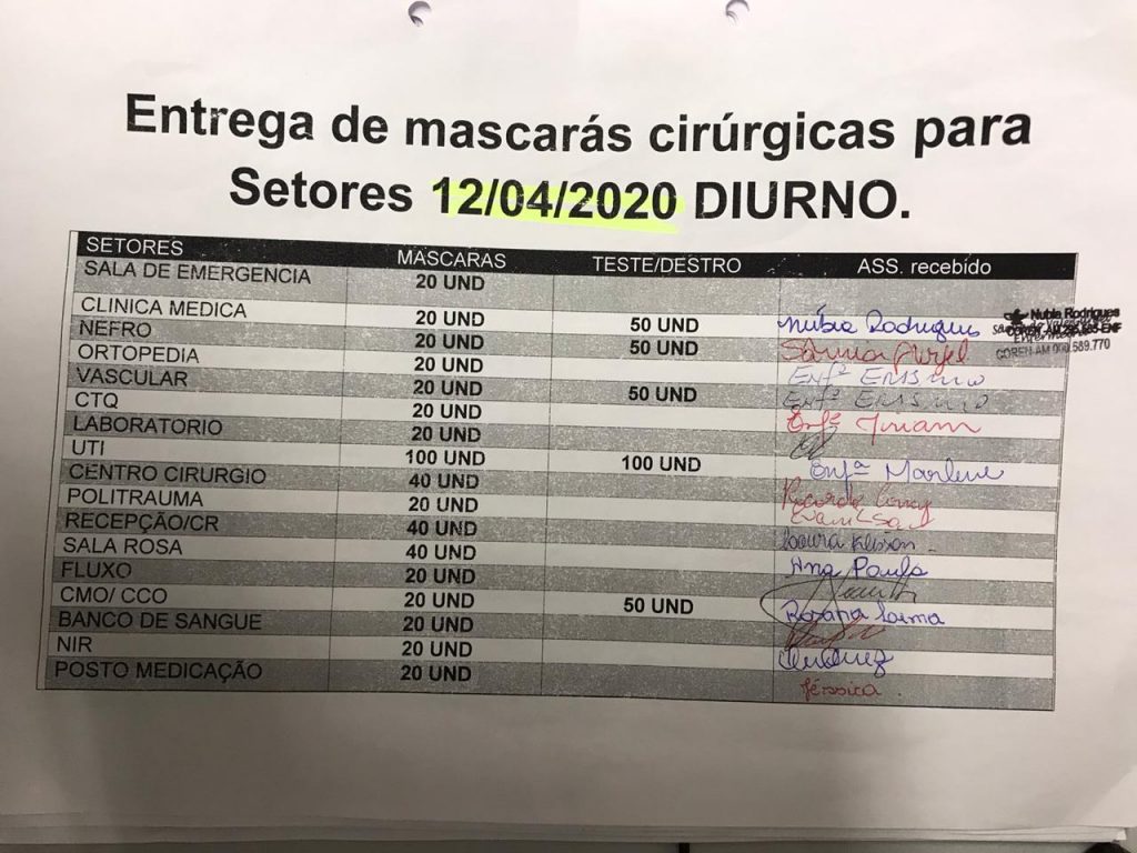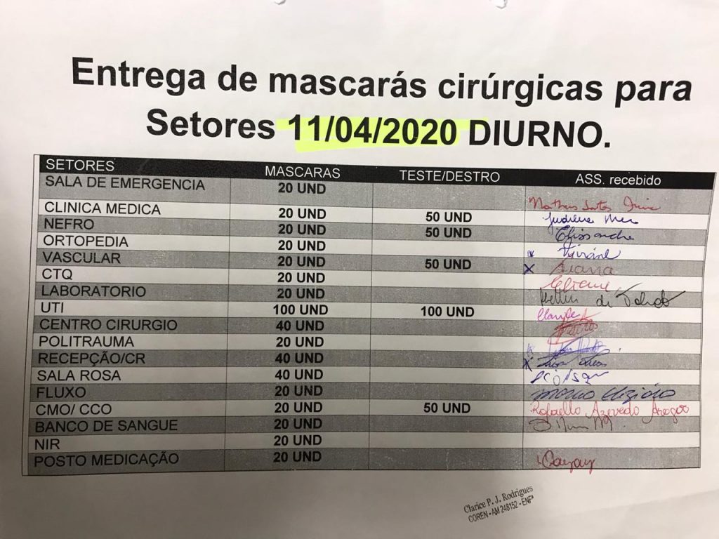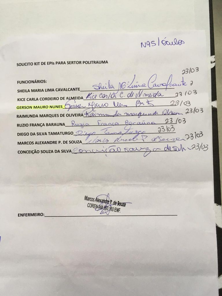 Um documento assinado pelo próprio técnico de enfermagem no dia 23 de março mostra que ele estava inserido na lista de profissionais para a solicitação de reposição de máscaras N95. A reportagem não obteve retorno de Gerson Nunes até o fechamento da matéria neste domingo, 26.