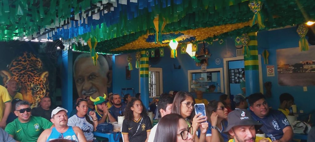 Para Karla, o ponto simples, com pinturas regionais nas paredes, é o local perfeito para emanar boas energias ao esporte considerado paixão nacional. “Sem dúvidas, o que me faz escolher vir para cá é o modo como me sinto quando estou aqui, é uma energia muito boa, na qual conseguimos, enquanto amantes da nossa cultura, unir o amor ao festival e ao futebol. Aqui me sinto em casa e sei que estou em um bom lugar”, conta a torcedora.