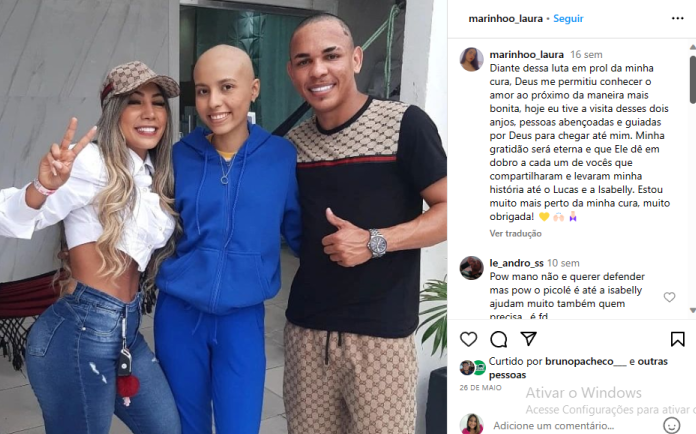 Laura Marinho é natural de Itacoatiara e foi diagnosticada, em janeiro deste ano, com Sarcoma de Ewing, considerado um câncer raro. Em busca de arrecadar R$ 400 mil para o tratamento contra a doença na cidade de Curitiba, no Paraná, ela recebeu R$ 200 mil dos influenciadores Isabelly Aurora e Lucas Picolé.