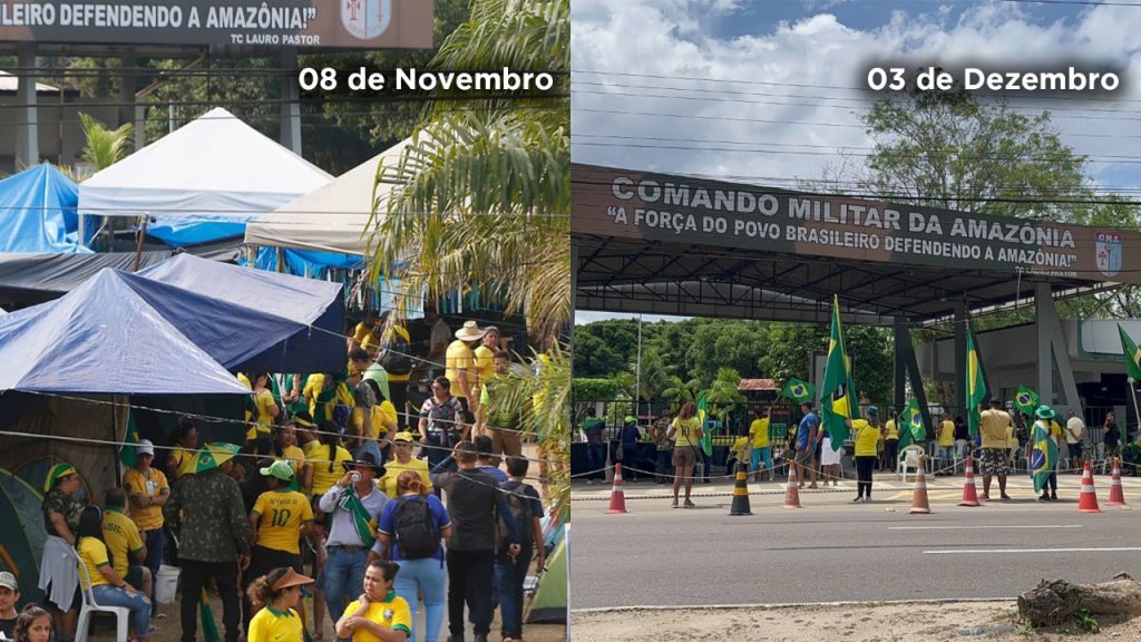 MANAUS – O protesto antidemocrático em frente ao Comando Militar da Amazônia (CMA), na zona Oeste da capital do Amazonas, completou um mês no último dia 2 de dezembro com movimento mais enfraquecido, mas ainda baseado no discurso de ódio.