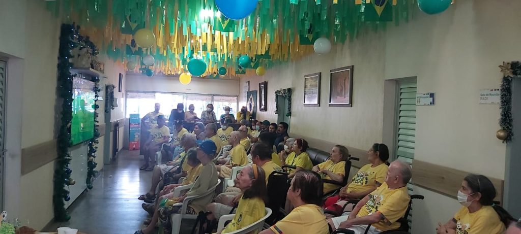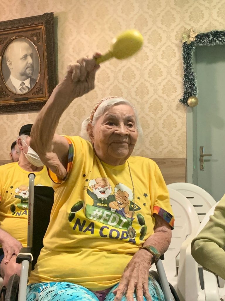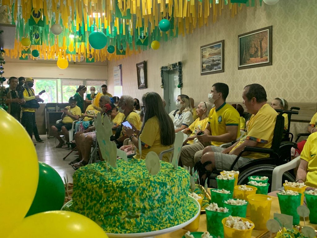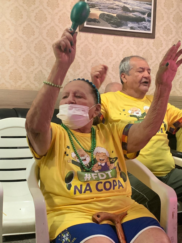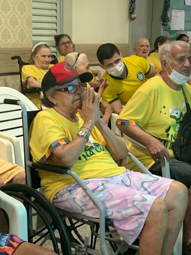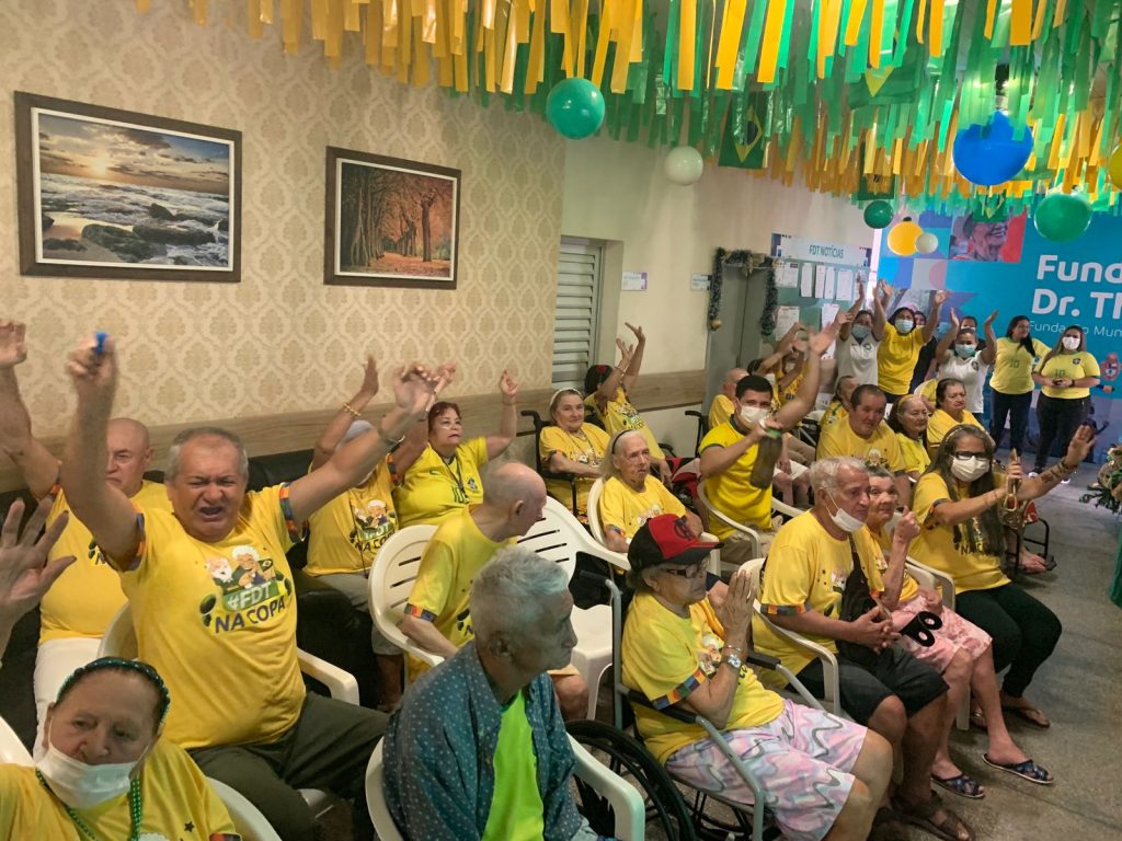 MANAUS- “A Copa do Mundo me traz tantas boas lembranças de momentos com meus amigos, família, e gosto bastante. Com 92 anos, poder compartilhar desse momento com os colegas, aqui, é uma bênção”. A frase nostálgica é de dona Maria do Carmo, que integra a turma do “Idosos na Copa”. Promovido pela Fundação de Apoio ao Idoso Doutor Thomas (FDT), situada no bairro Nossa Senhora das Graças, Zona Centro-Sul de Manaus, a fundação transmitiu o jogo do Brasil contra a Coreia do Sul nesta segunda-feira, 5, com uma programação temática verde e amarelo.