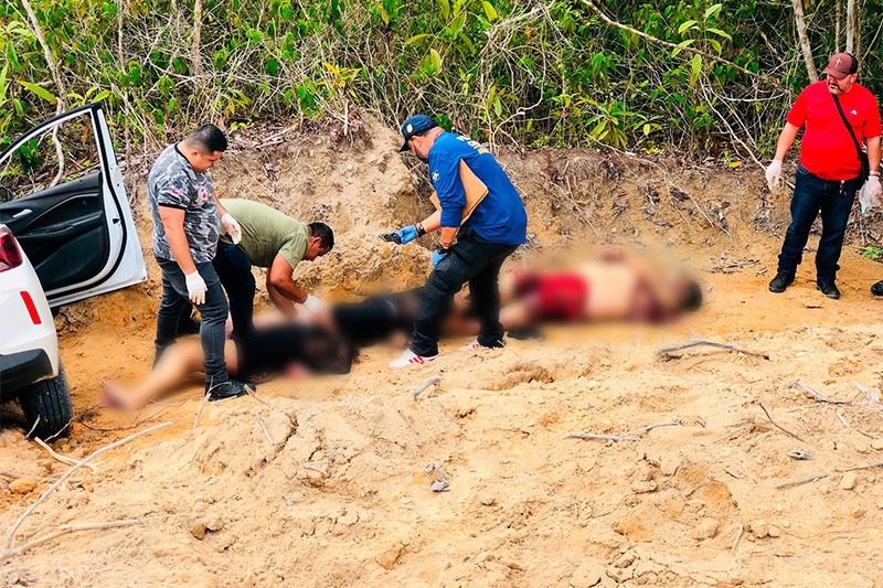 Quatro corpos foram encontrados, na manhã desta quarta-feira, 21, dentro de um veículo da marca Chevrolet Onix, branco, placa QZO-3B24, no ramal Água Branca. Os corpos encontrados foram os dos irmãos Diego Máximo Gemaque, 33 anos, e Lilian Daiane Máximo Gemaque, 31 anos, assim como de Alexandre do Nascimento Melo, 29 anos, e Valeria Luciana Pacheco da Silva, 22 anos.