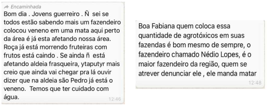 Técnicos da Ideflor-bio ouviram indígenas da Aldeia Wazu que relataram perceber a presença diária de pequenas aeronaves pulverizando a substância na região. Os moradores perceberam os efeitos negativos da pulverização sobre as roças, hortas, pomares, áreas de extrativismo, como amarelecimento de folhas, queda das flores, entre outros.