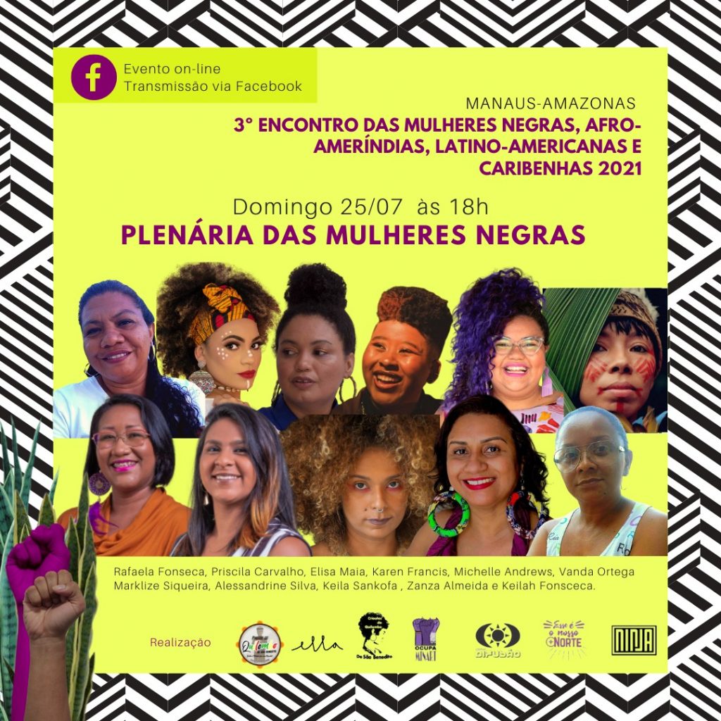 Para debater sobre o tema, acontece neste domingo, 25, a Plenária das Mulheres Negras, no 3º Encontro das Mulheres Negras, Afro-Ameríndias, Latino-americanas e Caribenhas 2021, em Manaus, no Amazonas. Como forma de evitar aglomeração e a propagação da Covid-19, o encontro será realizado virtualmente, na página “Semana Mulheres Negras Manaus“, no Facebook.