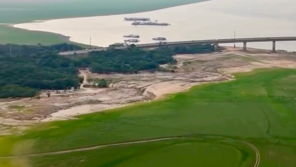 MANAUS (AM) – O novo “ponto turístico” na Região Metropolitana de Manaus tem chamado a atenção para a escassez de lugares arborizados e de lazer disponíveis para a população na capital amazonense. A análise surgiu após um tapete de grama aparecer ao lado da Ponte Jornalista Phelippe Daou, conhecida como Ponte Rio Negro, que liga a capital ao município de Iranduba (a 27 quilômetros da cidade). O gramado é decorrente da seca histórica que afeta o Estado do Amazonas.