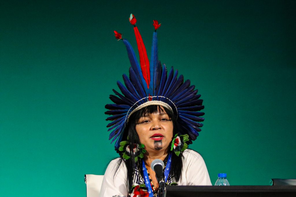 Na terça-feira, 5, a paraense participa do painel “As Vozes Indígenas na Defesa da Amazônia: Estratégias de Mobilização e Comunicação na Proteção dos Territórios”, com o coordenador-tesoureiro da Coiab, Avanilson Karajá; o coordenador da Articulação dos Povos Indígenas do Brasil (Apib), Kleber Karipuna; e a cofundadora da Articulação das Mulheres Indígenas Guerreiras da Ancestralidade (Anmiga), Braulina Baniwa.