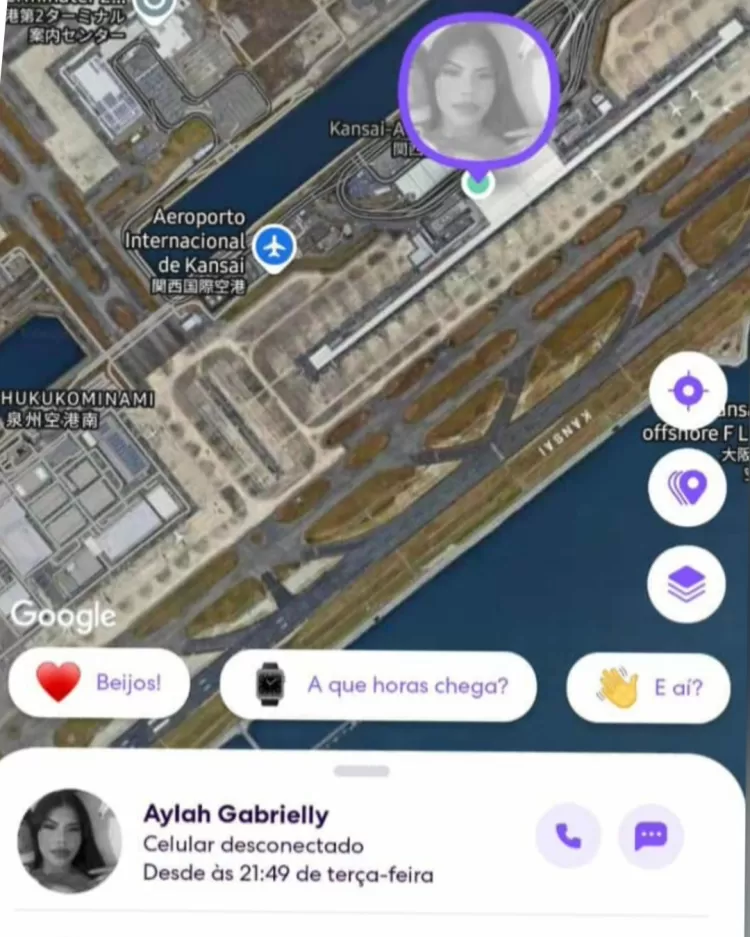 Com a falta de comunicação, o aparelho celular da amazonense foi rastreado. Para a surpresa da família, o telefone indicava estar desconectado no Aeroporto Internacional de Kansai, na região metropolitana de Osaka, no Japão, às 21h49.