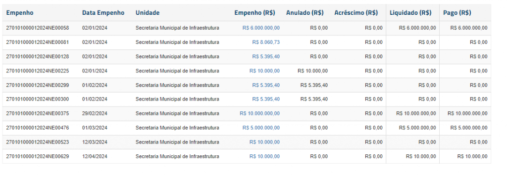 Segundo o Portal da Transparência de Manaus, apenas em 2024, foram pagos R$ 31 milhões à construtora por obras na cidade. (Veja abaixo)