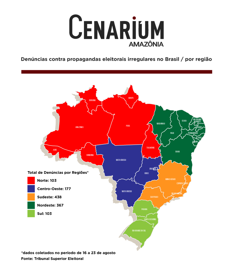 De acordo com o monitor Pardal, entre os dias 16 a 23 de agosto, o TSE apontou a região Sudeste como a líder de denúncias, com 438 registros. Seguido pelo Nordeste, com 367 denúncias de propaganda eleitoral irregular; Sul com 245; Centro-Oeste com 177; e o Norte com 103.