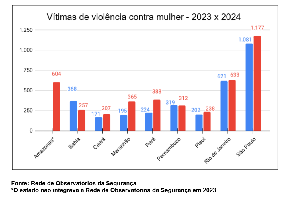 Esses dados fazem parte do boletim “Elas Vivem: um caminho de luta”, que monitora nove Estados brasileiros (Amazonas, Bahia, Ceará, Maranhão, Pará, Pernambuco, Piauí, Rio de Janeiro e São Paulo) e destaca a persistência de uma sociedade profundamente machista e misógina, que subordina as mulheres e perpetua comportamentos violentos, como afirmado por Taiana Passos, pesquisadora do Instituto Mãe Crioula (IMC), que integra a ROS no Estado.