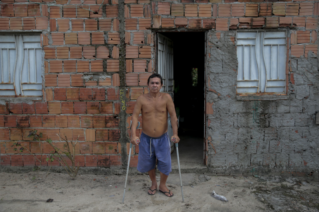 “Assim como a nossa família, outras também têm parentes com deficiência. Nossas filhas, às vezes, voltam feridas pelo mato das ruas estar muito alto e cair nos buracos. Mas, precisamos que elas saiam para trazer comida para casa”, relata Claudemir, que diz ainda que as filhas o auxiliam na locomoção pela casa.