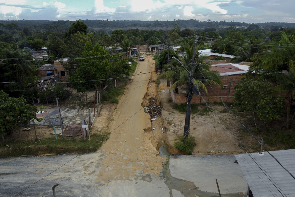 A moradora refere-se à visita do prefeito de Manaus, David Almeida (Avante), em janeiro deste ano, à comunidade. Na visita, Almeida anunciou o início de um projeto de reestruturação da comunidade e que, após o carnaval, assinaria ordem de serviço para pavimentar a segunda etapa do parque.