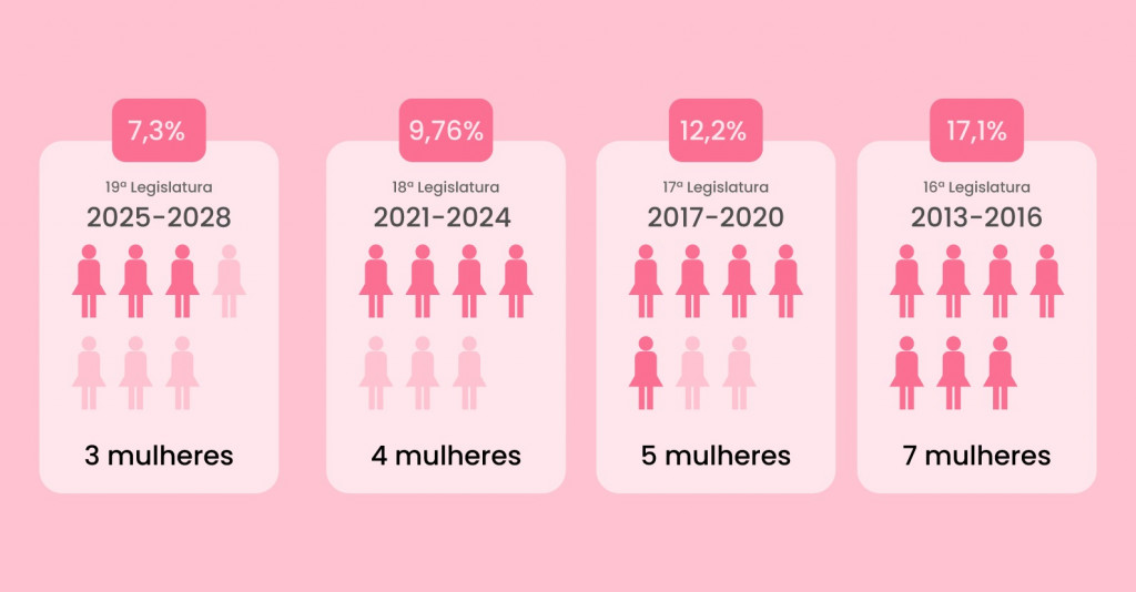 A tendência de queda pode ser observada desde o mandato dos anos 2017 a 2020, quando cinco mulheres ocuparam assentos na Casa Legislativa: Joana Darc (União Brasil), Glória Carrate, Professora Jacqueline, Mistes Salles e Therezinha Ruiz. Em legislaturas anteriores, como ocorreu entre 2013 e 2016, o número de mulheres eleitas era ainda maior, com sete parlamentares, incluindo Glória Carrate, Bispa Luciana, Socorro Sampaio, Professora Jaqueline, Rosi Matos, Vilma Queiroz e Therezinha Ruiz.