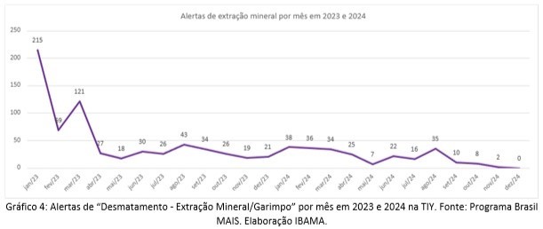 Durante os anos de 2023 e 2024, o Governo Federal realizou 3.536 ações na TIY. Dessas ações, 633 foram operações de fiscalização do Ibama, que resultaram na aplicação de R$ 69,1 milhões em multas referentes a 211 autos de infração.