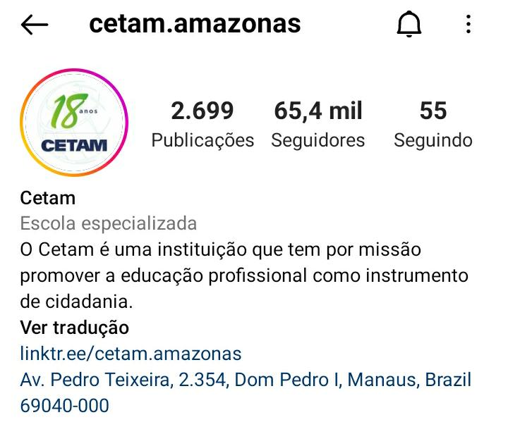Perfil do Cetam, nas redes sociais, é o mais seguido dentre os órgãos estaduais do AM