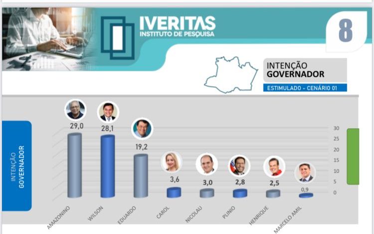 Em junho, o Instituto Iveritas publicou outro cenário semelhante em relação às intenções de voto sobre a corrida eleitoral no Amazonas. De acordo com o instituto, no levantamento estimulado o governador Wilson Lima aparecia em empate técnico com Amazonino Mendes. Eram 28,1% contra 29%, respectivamente.