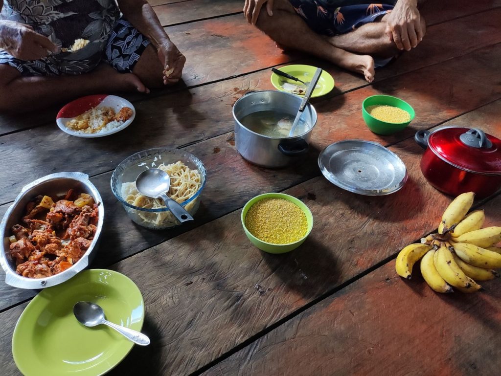 Segundo os anciãos e os chefes familiares, os jovens e adolescentes das comunidades consomem mais alimentos ultraprocessados do que os adultos — um reflexo, segundo a pesquisa, da influência crescente da merenda escolar.